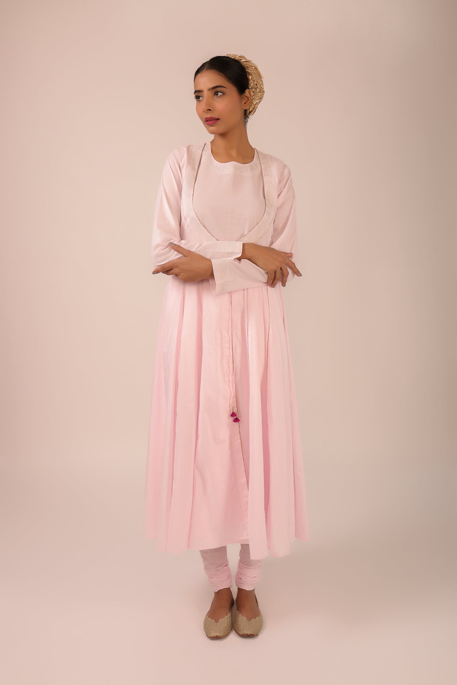 Fuchsia Silk Chanderi Embroidered Gota Round A Line Kurta Set