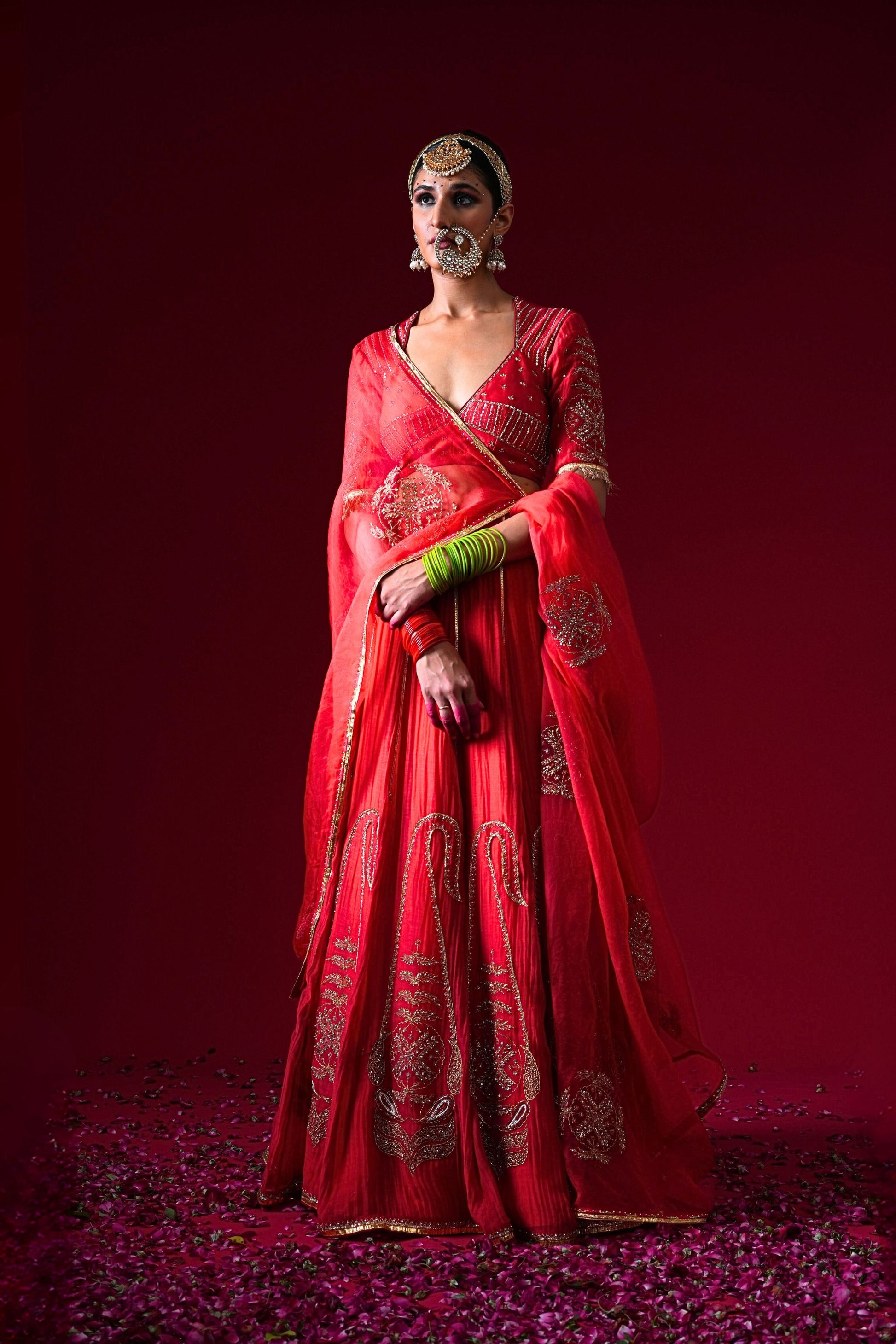 Kumudini Hand Embroidered Kalidaar Lehenga Set