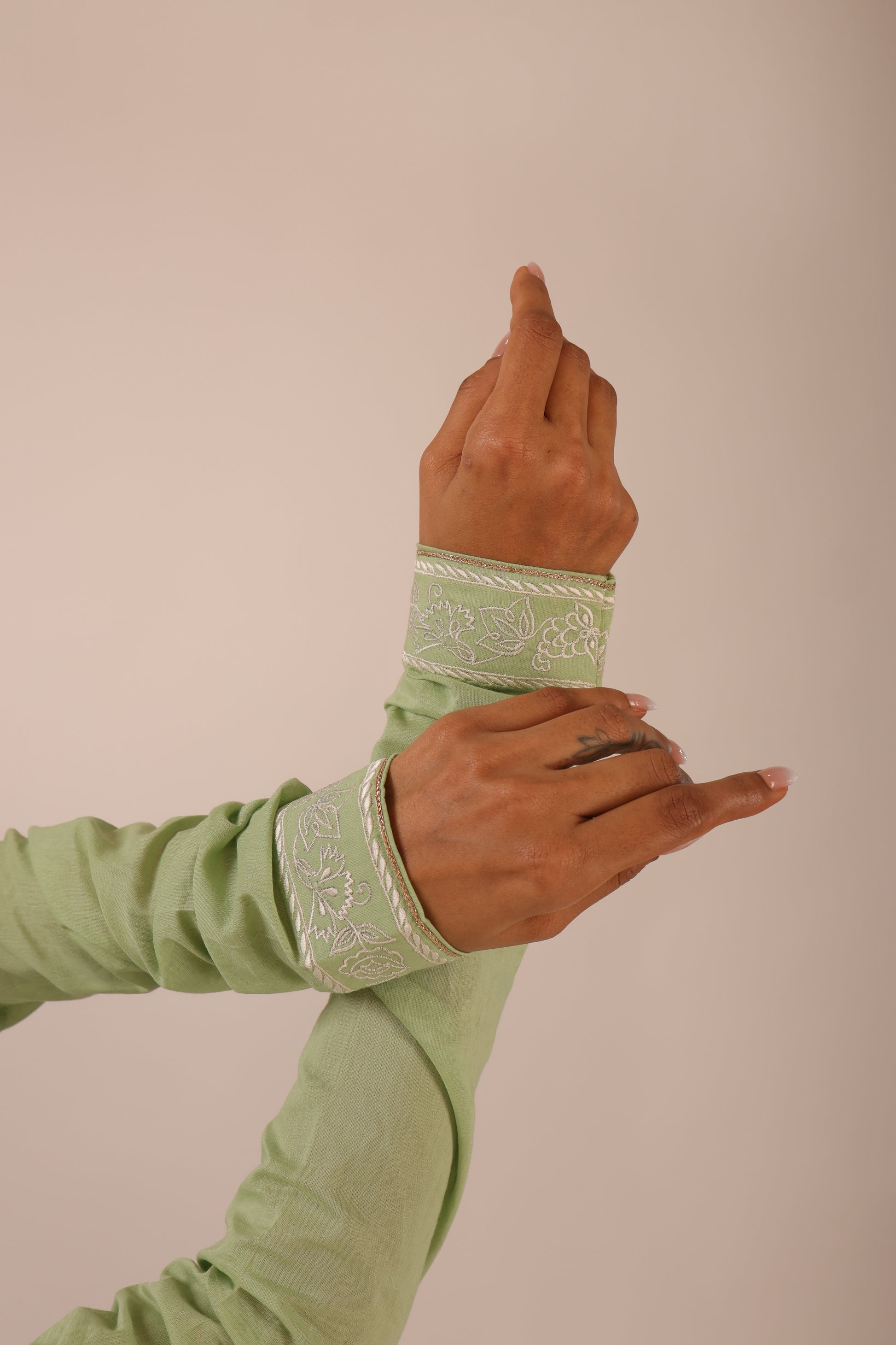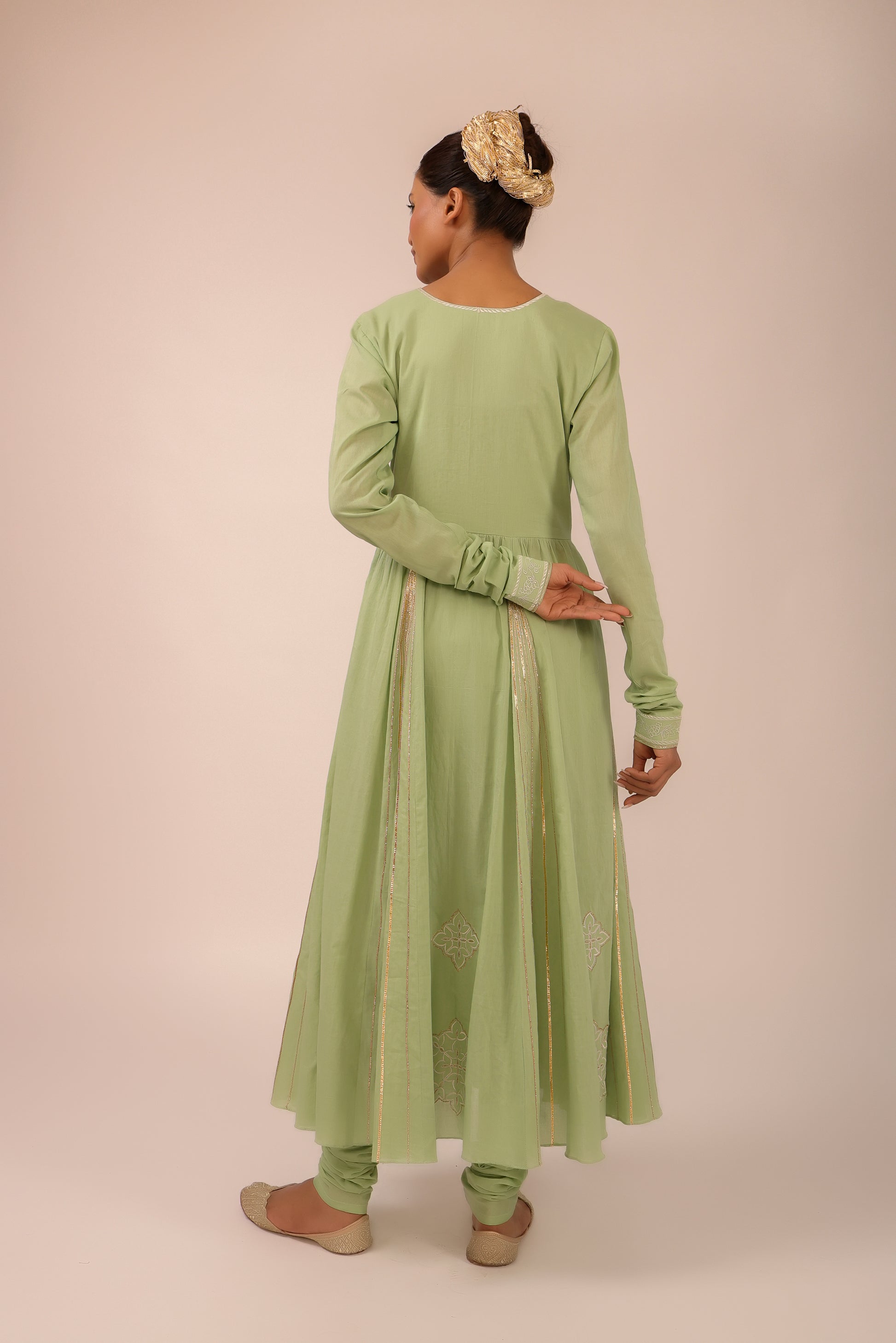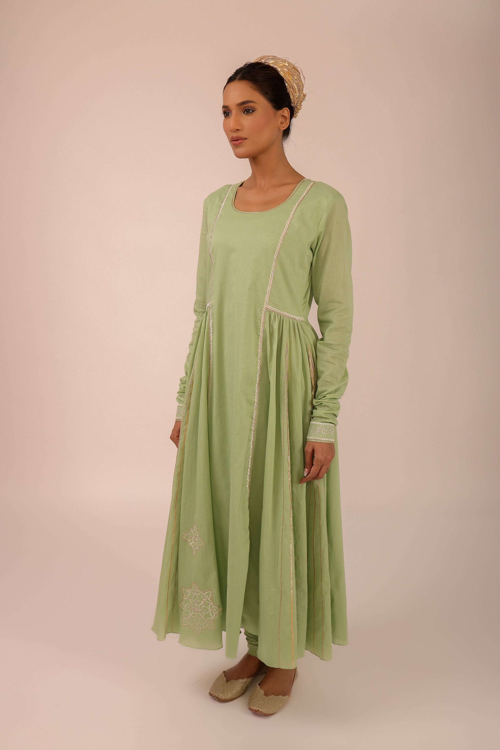 This Olive Green Embroidered Kalidaar Suit Set features pure cotton fabric for breathable comfort and elegant drape. The intricate embroidery enhances its traditional charm, while the accompanying churidaar ensures a perfect fit. Paired with a lightweight Kota Doriya cotton dupatta, this ensemble offers a refined blend of style and comfort, ideal for festive occasions and casual wear alike.