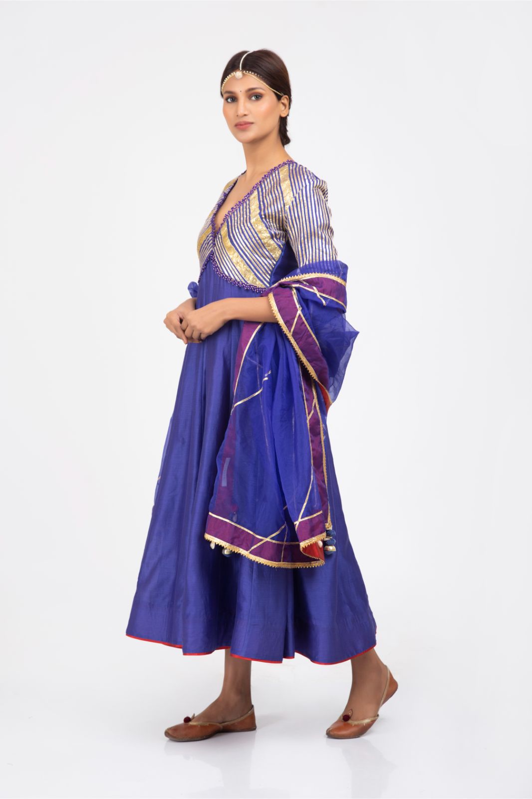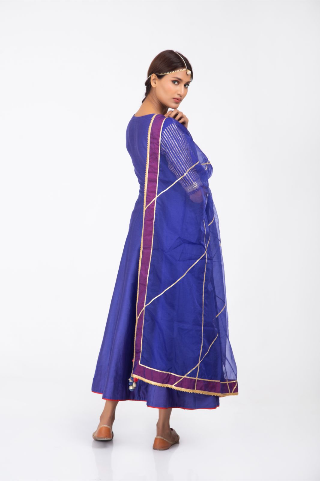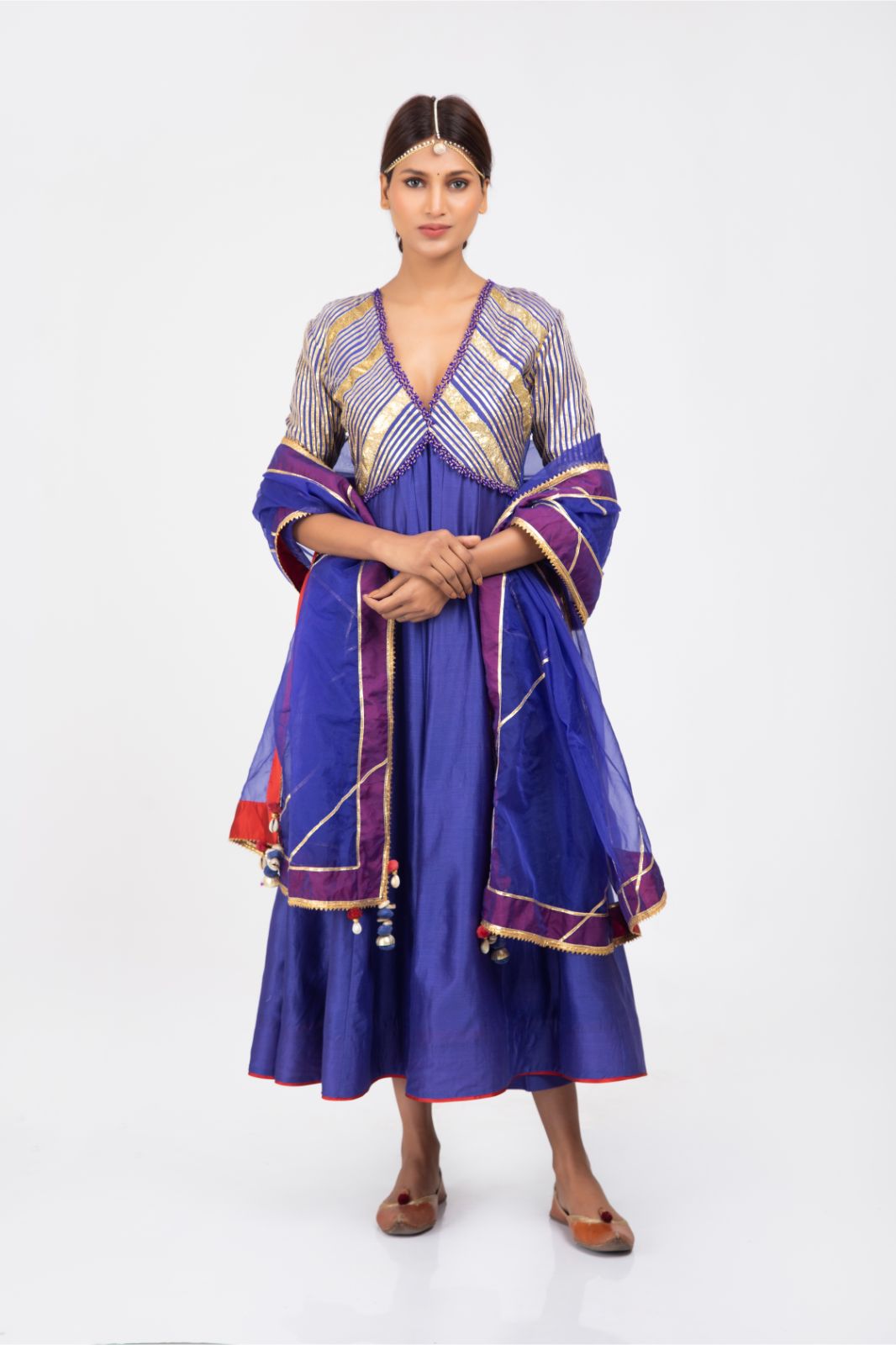 Description: Front yoke gota embroidery kalidaar kurta paired with straight cut pant and organza dupatta