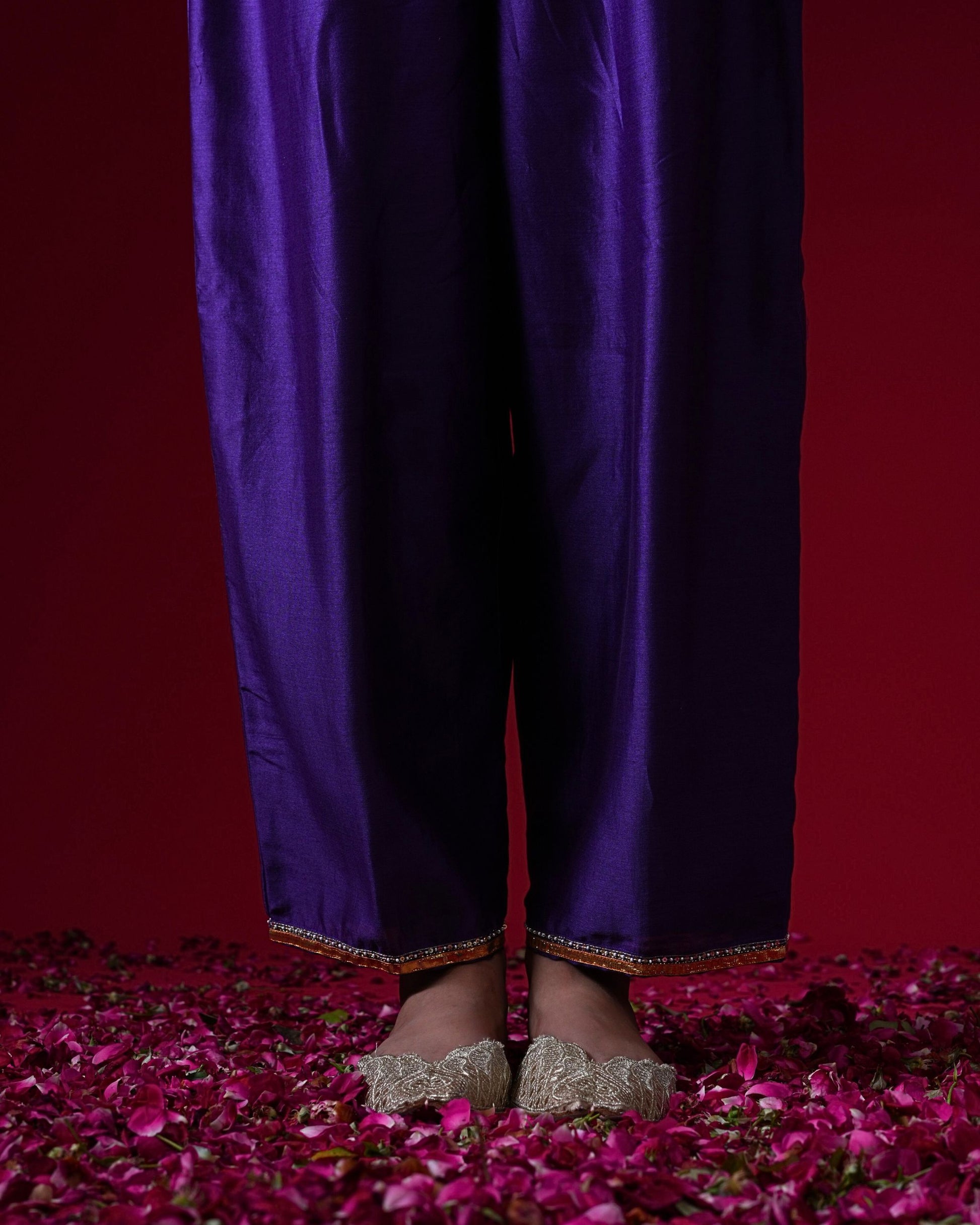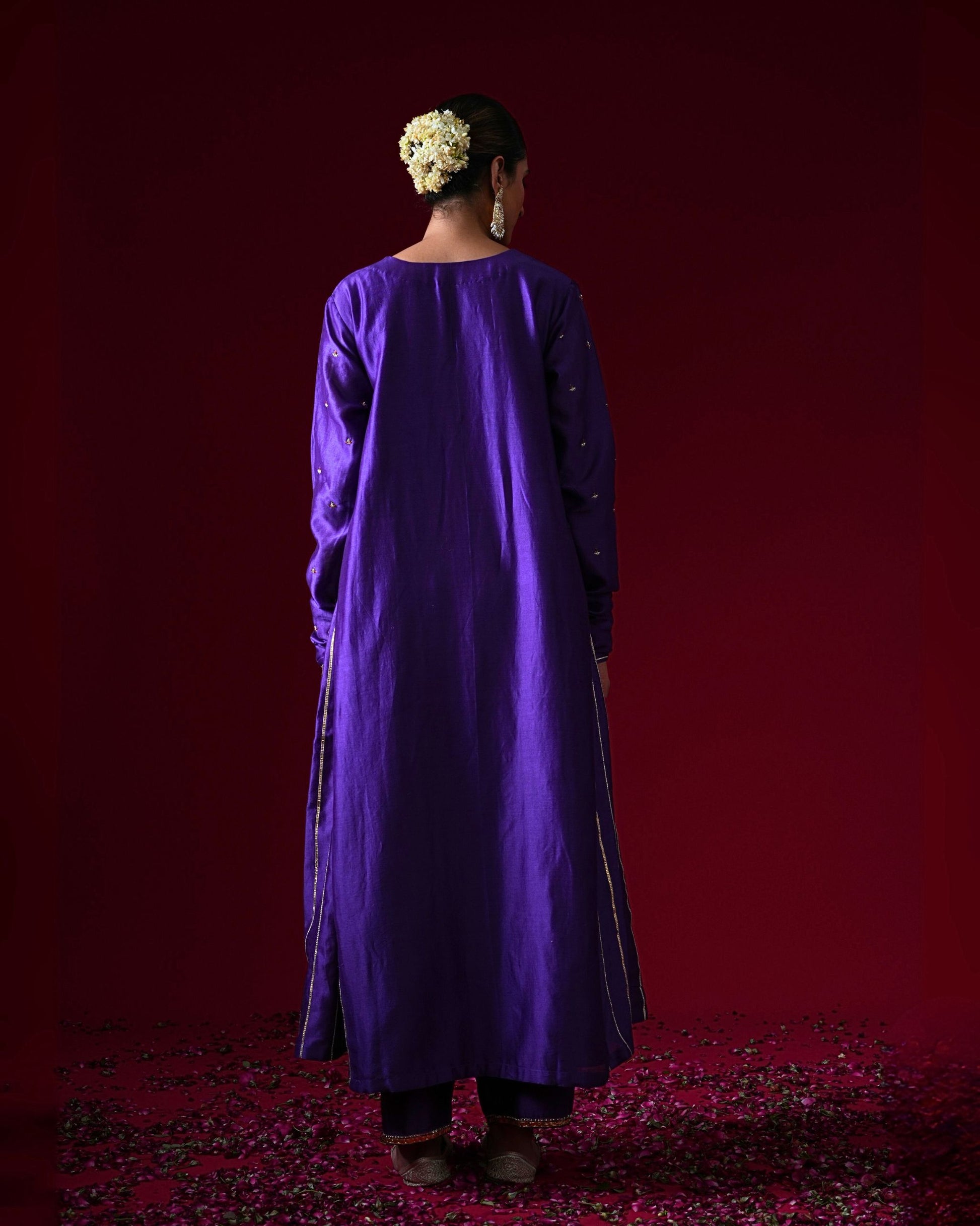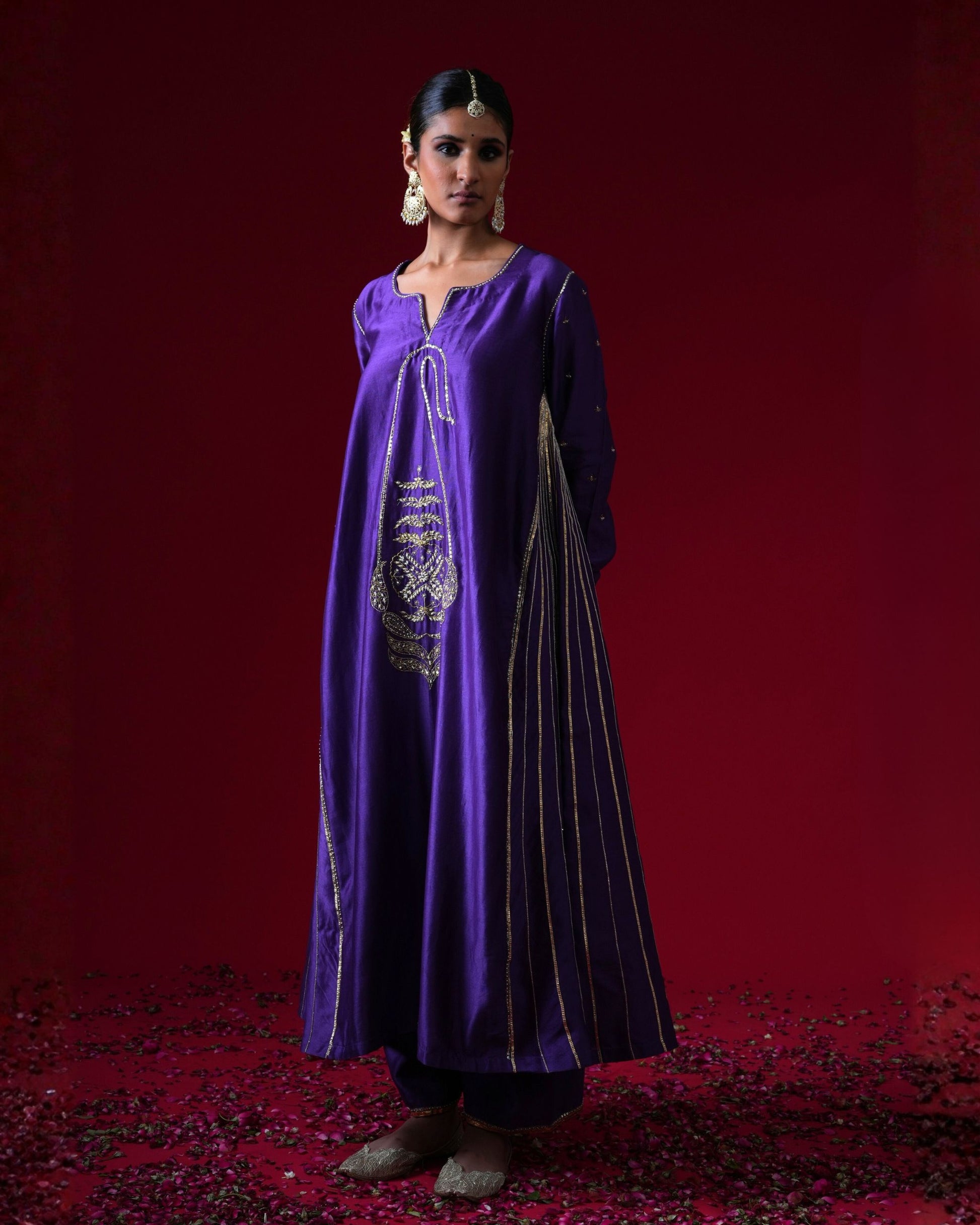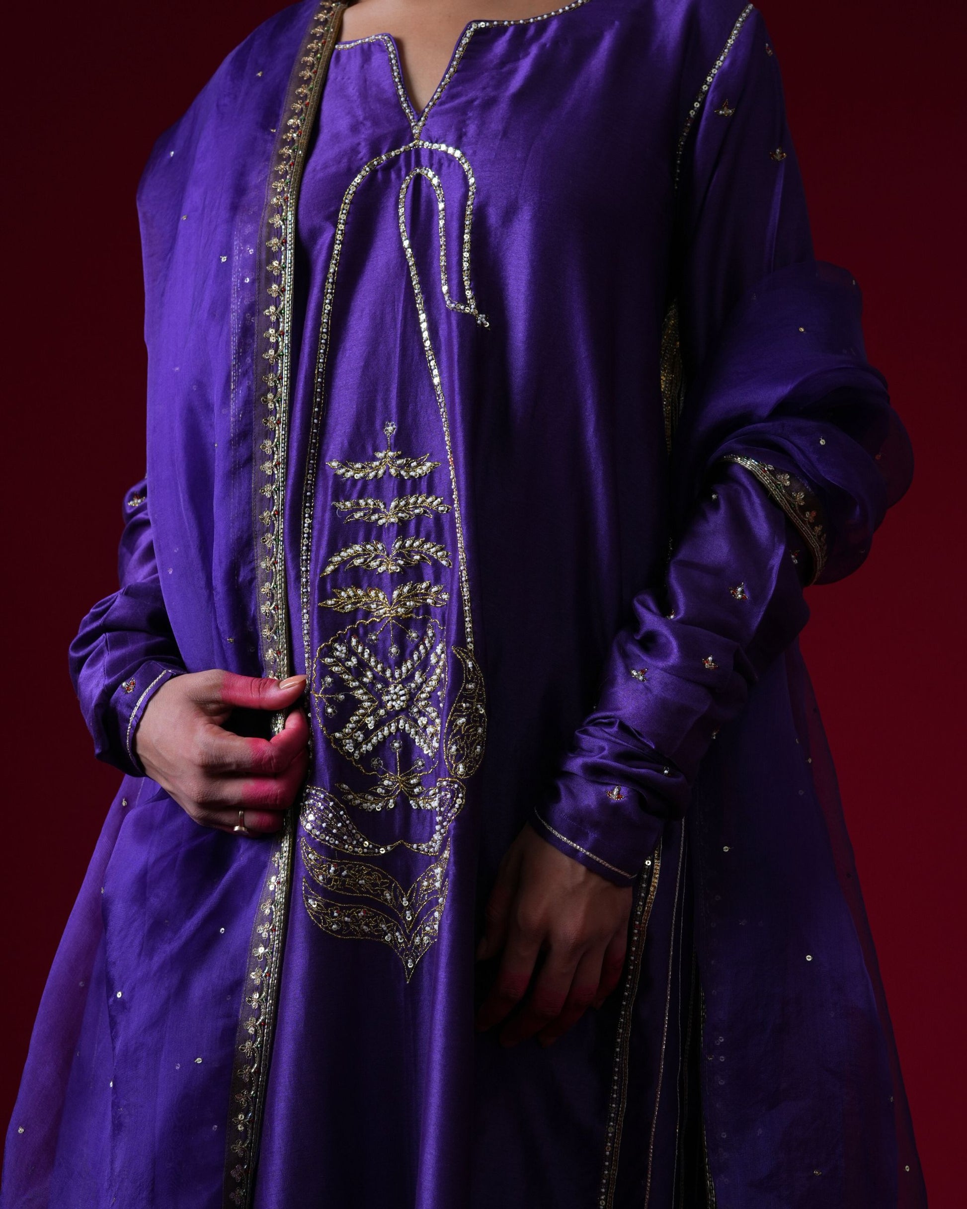 Decription: Silk Chanderi Hand Embroidered Side Kali Kurta Set with Silk Organza Hand Embroidered Dupatta.